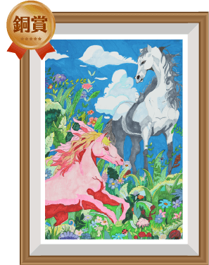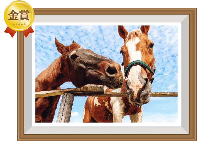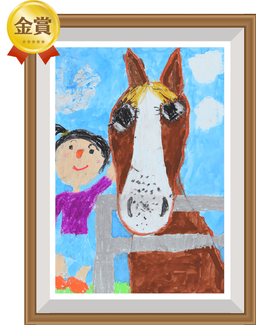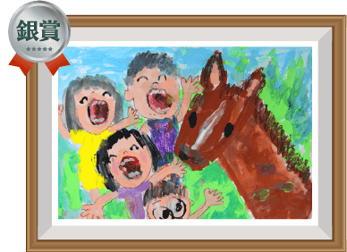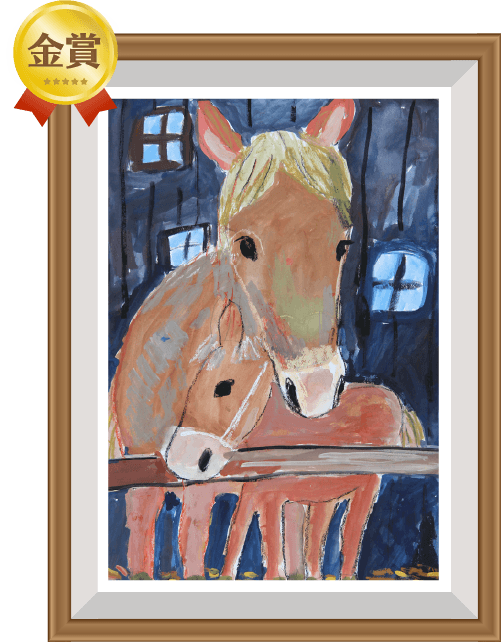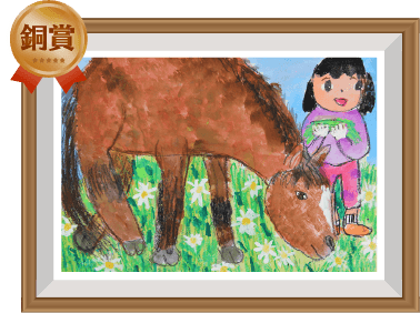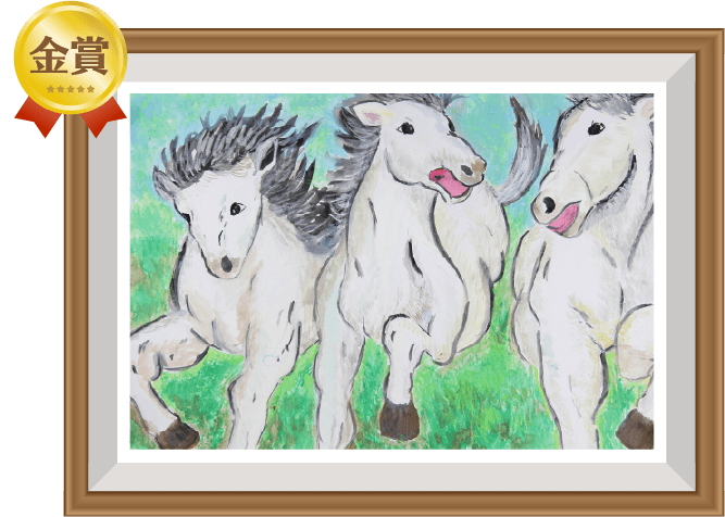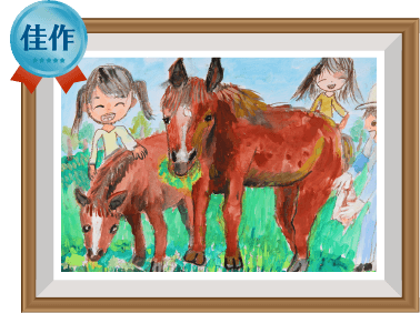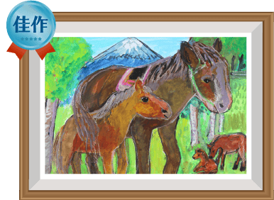 メインに描かれた親子の馬の色使いが巧みで、現実に近い質感を感じます。