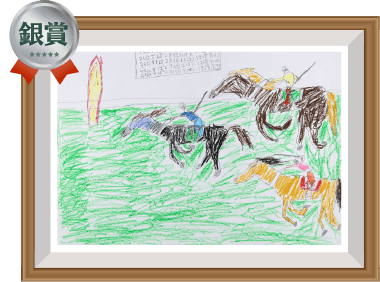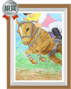 大地を駆け抜ける馬を、やや斜め下の視点から描く着想が巧みで、疾走感や躍動感がより伝わる作品となっています。